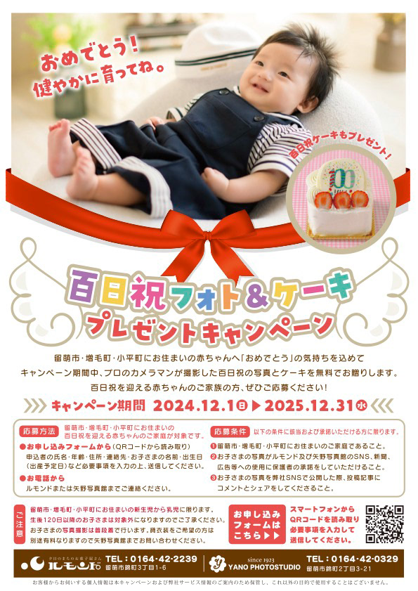 百日祝いキャンペーンを開催中です!対象の方は是非お申し込みお待ちしてます(^^)
